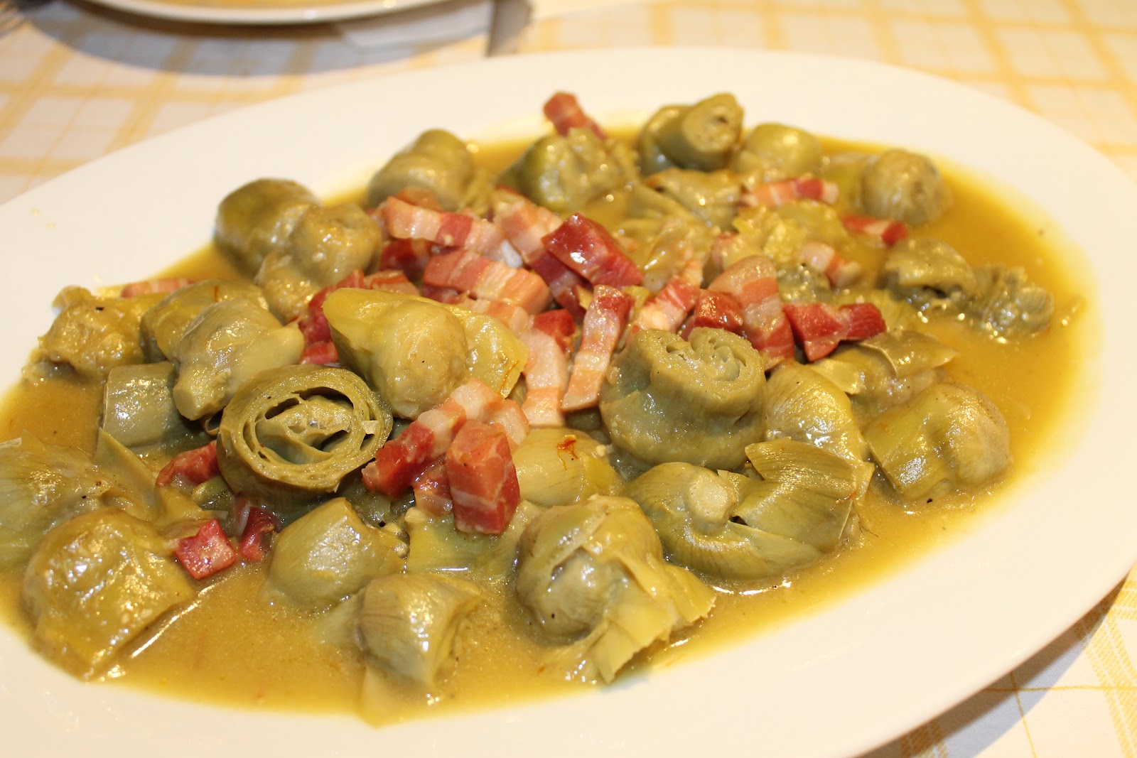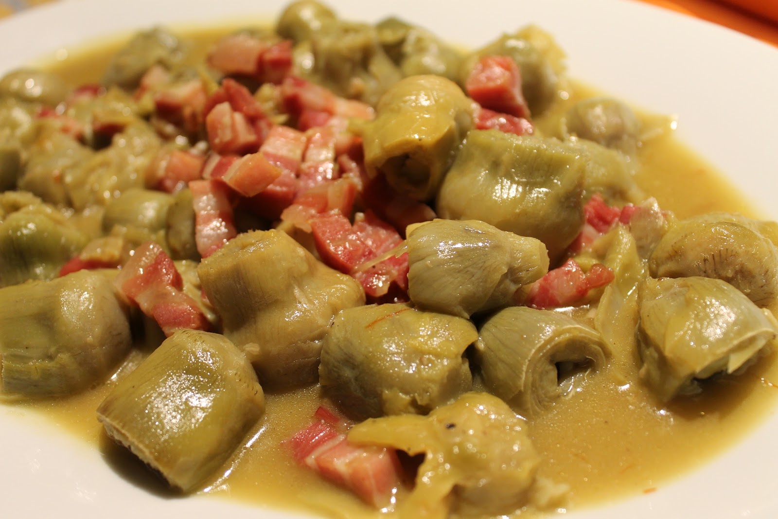 Receta de alcachofas con jamón. Cuchillito y Tenedor