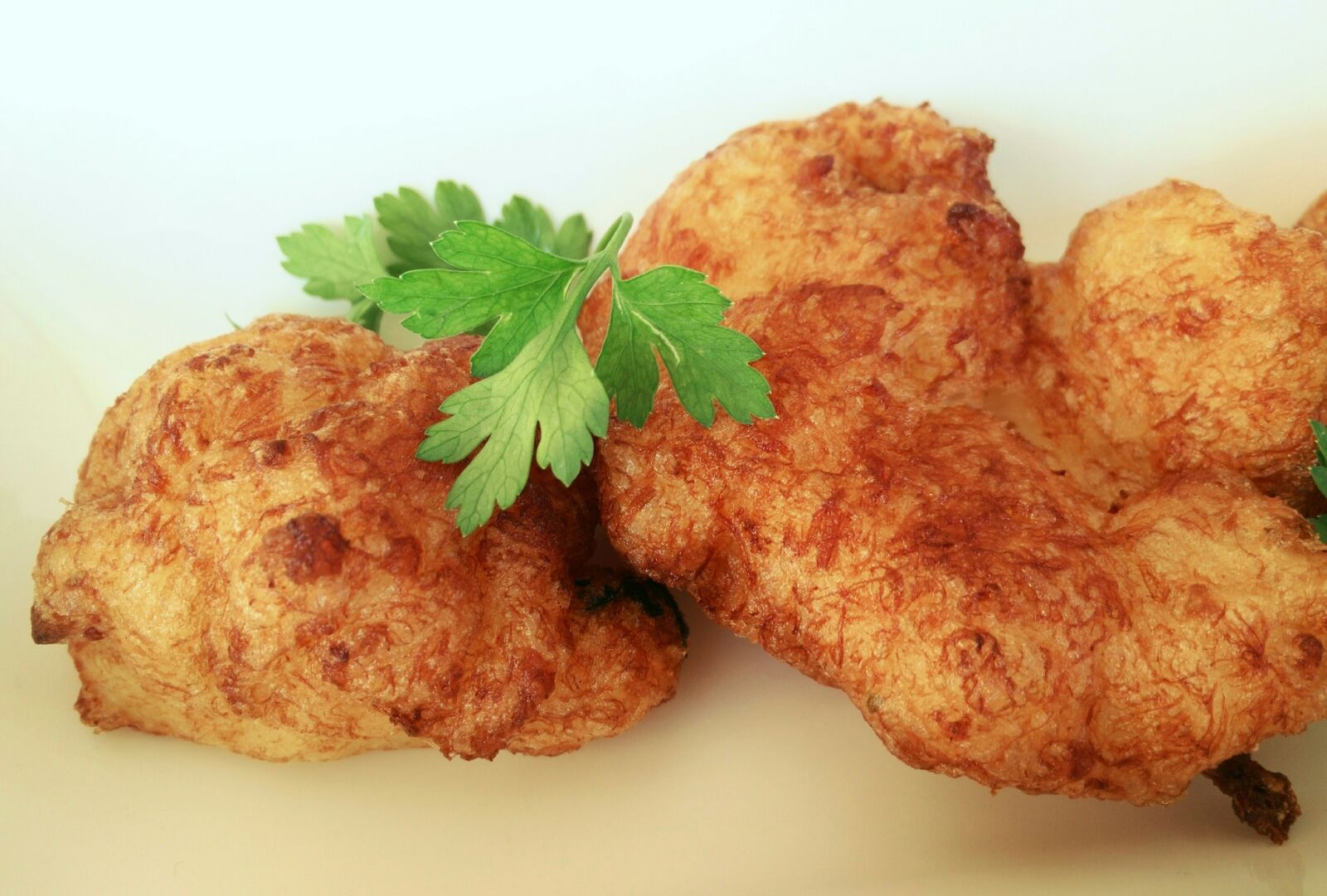 Bunyols de Bacalla Salt Cod Fritters. Soaked, poached salt cod flaked into choux pastry then