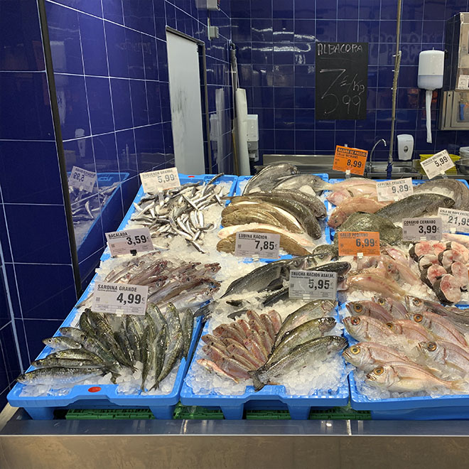 Sin embargo, las cajas verdes de pescado en Mercadona contienen exclusivamente pescado fresco de lonjas cercanas. Suele ser pescado procedente de la zona o el entorno del supermercado que lo comercia, por lo que puede variar en función de las capturas y tradiciones culinarias de cada zona. Este pescado se comercializa en un máximo de 24 horas.