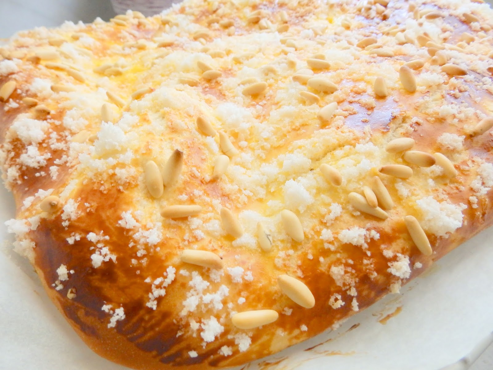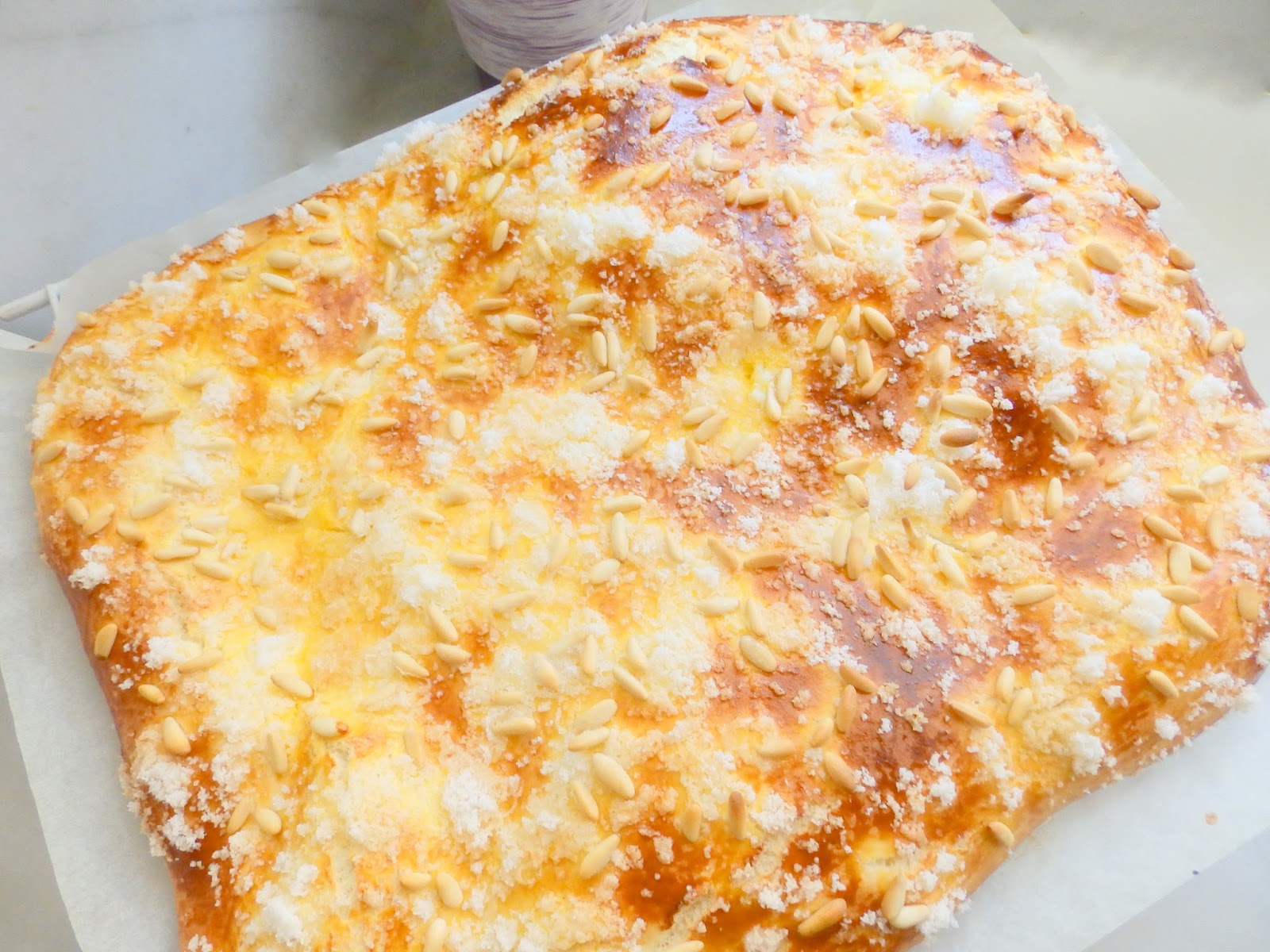 Coca de sucre i pinyons