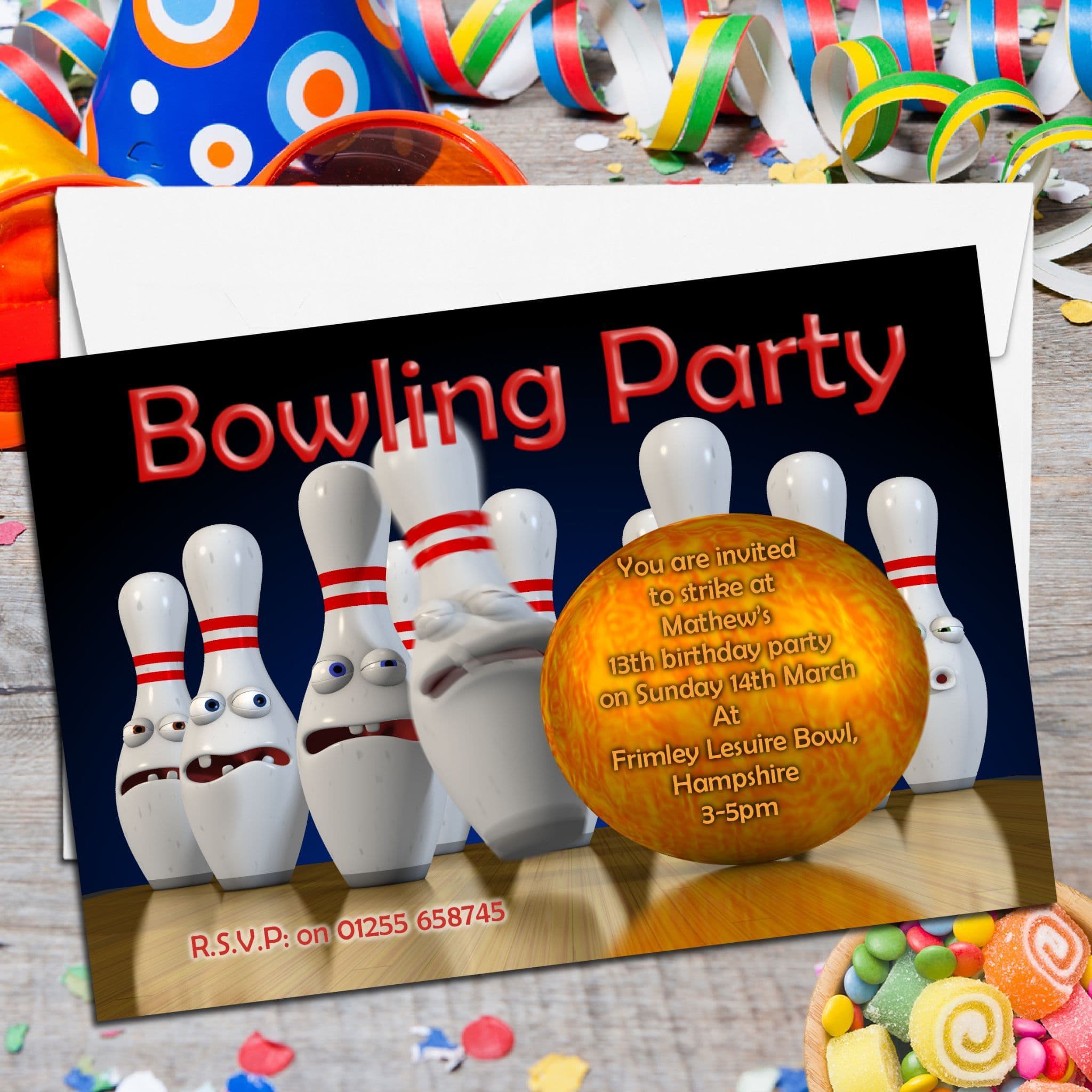 10 Personalised Tenpin Bowling Birthday Party Invitations N2