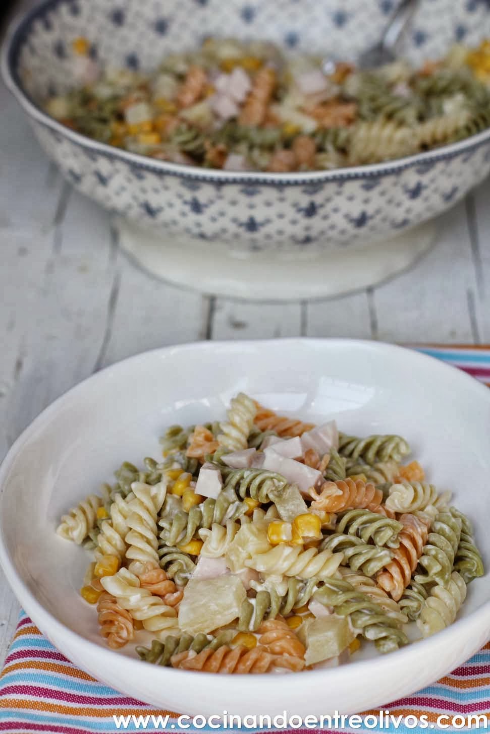 Ensalada de pasta con piña. Receta paso a paso. Cocinando Entre Olivos