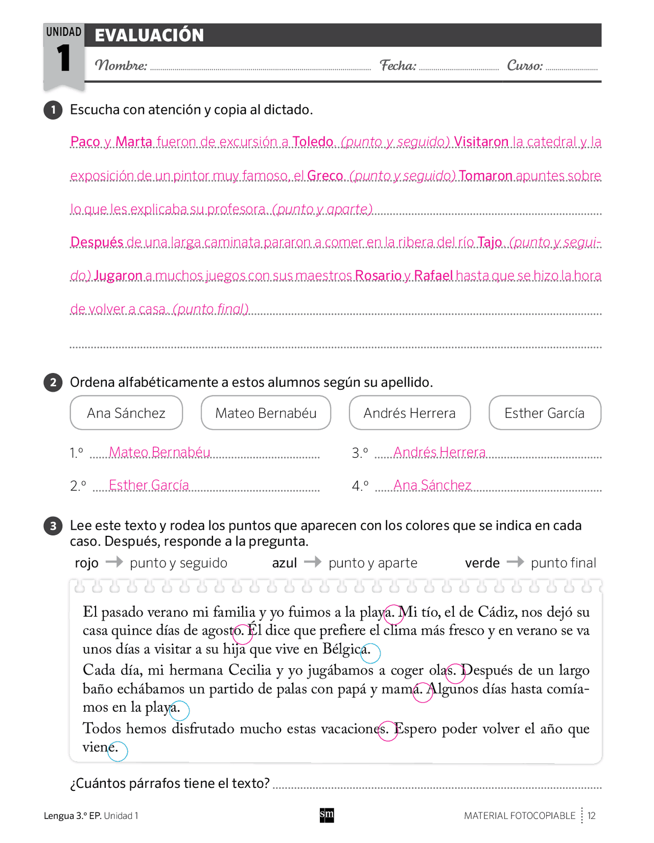Evaluación Tema 1 Lengua 3 primaria sm savia digital Docsity
