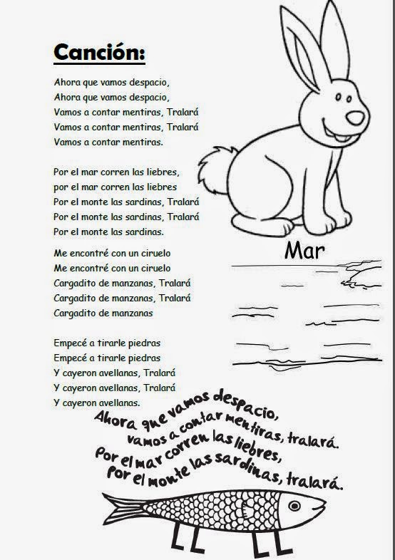 Canción infantil Vamos a contar mentiras ¿Quién no ha contado alguna vez alguna mentira,para salir de algún lío,o por simple diversión? Pero ¡cuidado! No hay que abusar. Ahora que vamos despacio.Ahora que vamos despacio. Vamos a contar mentiras,tralará.Vamos a contar mentiras, tralará Vamos a contar mentiras. Por el mar corren las