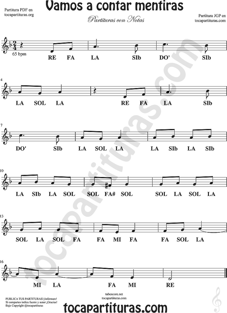 Vamos a contar mentiras Partitura con Notas Fácil Flauta Violín Oboe YouTube