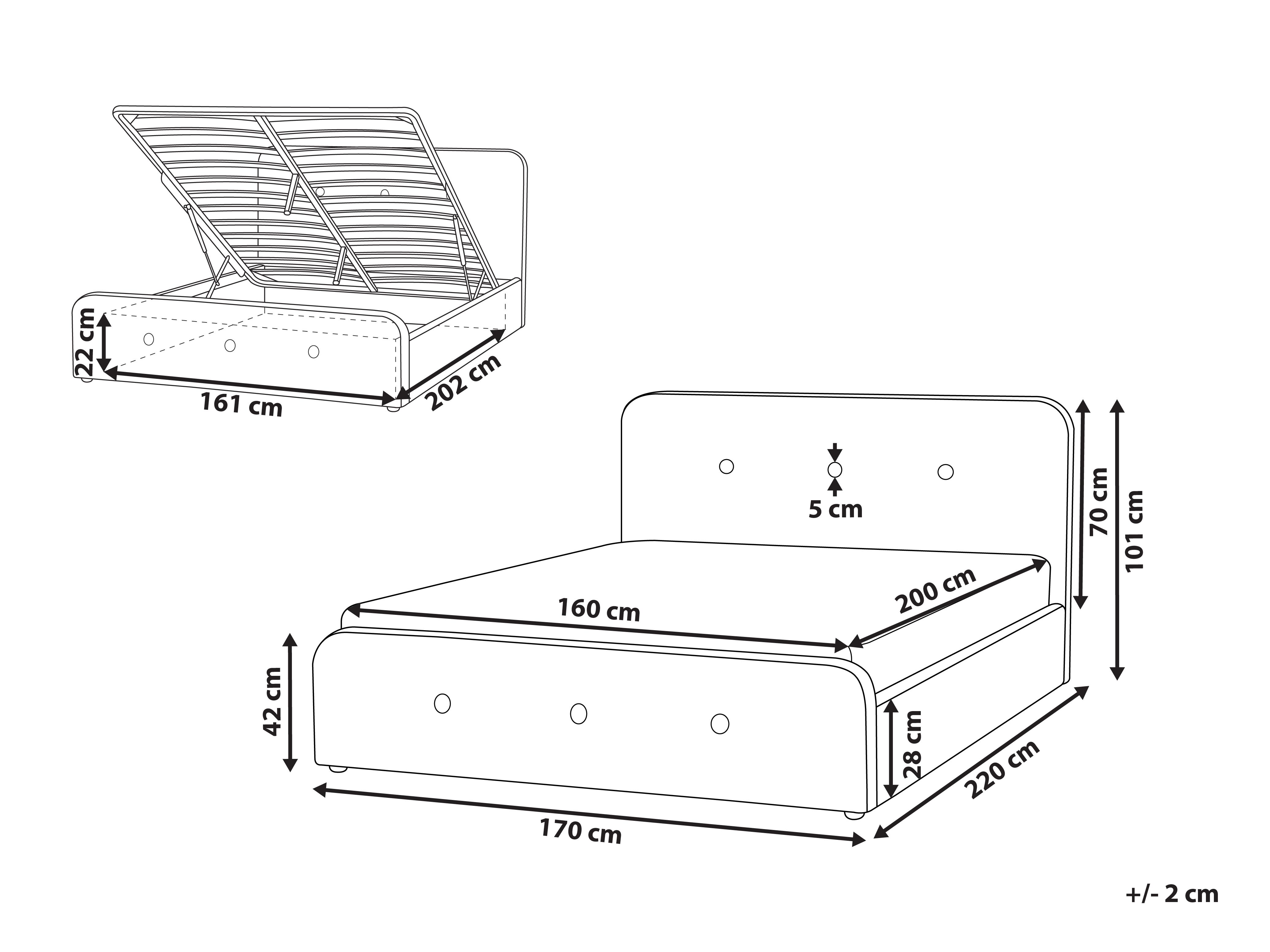 Cama de casal cinzenta escura com arrumação 160 x 200 cm RENNES Beliani.pt