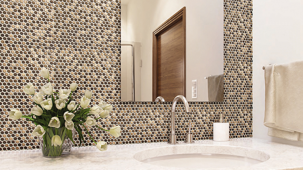 Textura y movimiento en distintos materiales. Los mosaicos de materiales naturales aportan textura a las paredes y contribuyen a generar una agradable sensación de movimiento. Están realizados a partir de una gran variedad de materiales seleccionados de entre las mejores y más bellas materias primas.. donde la riqueza del mosaico recuerda.