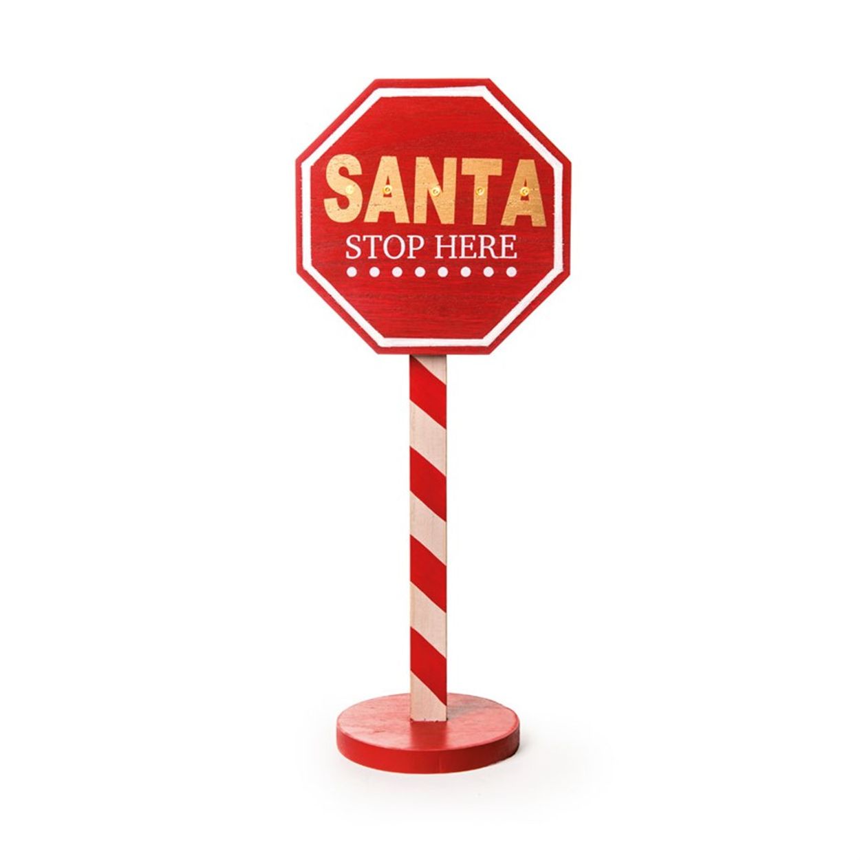 Placa Decorativa Santa Stop Here Vermelho No Magazine 25 Magazine 25 de Março