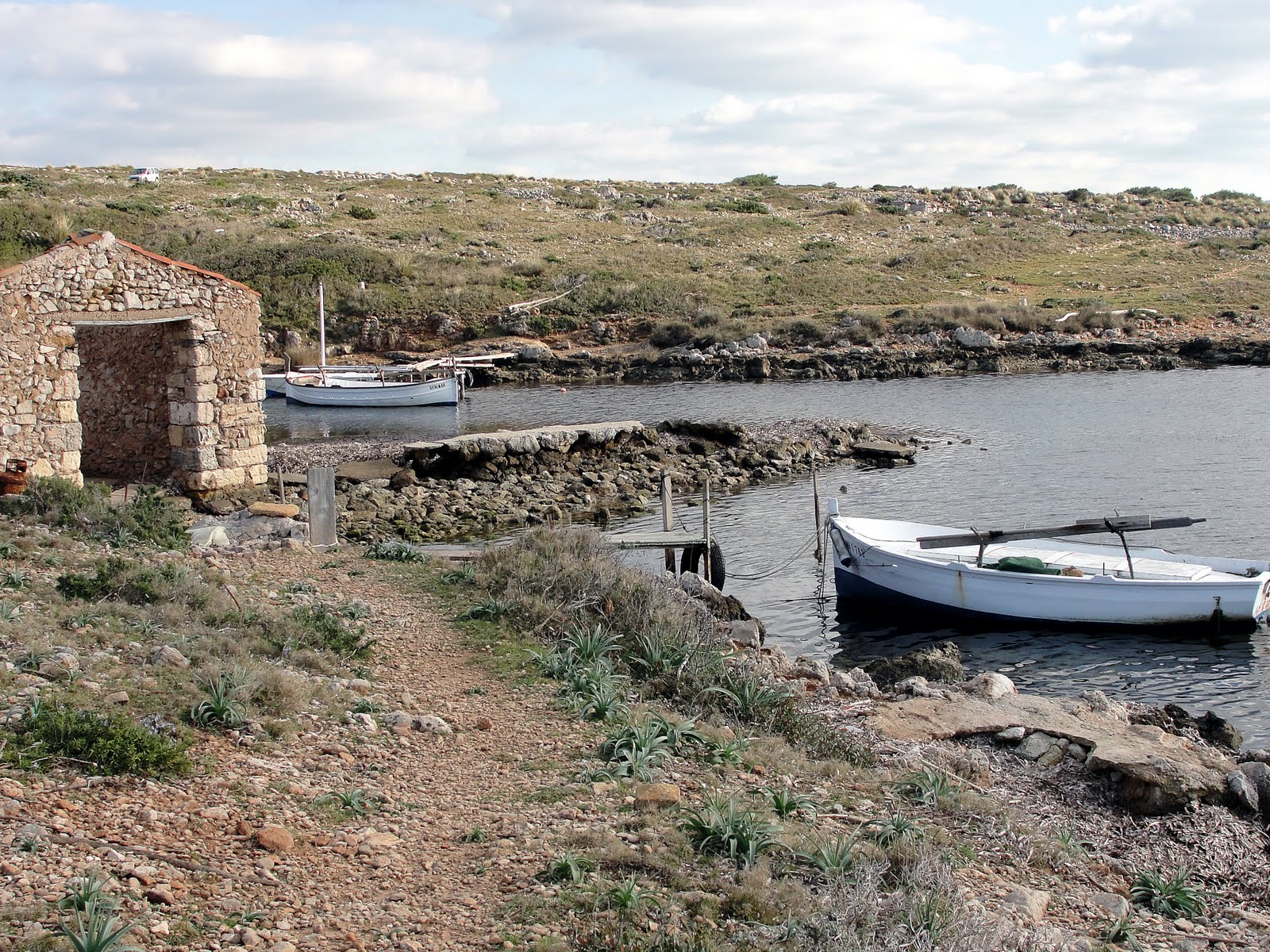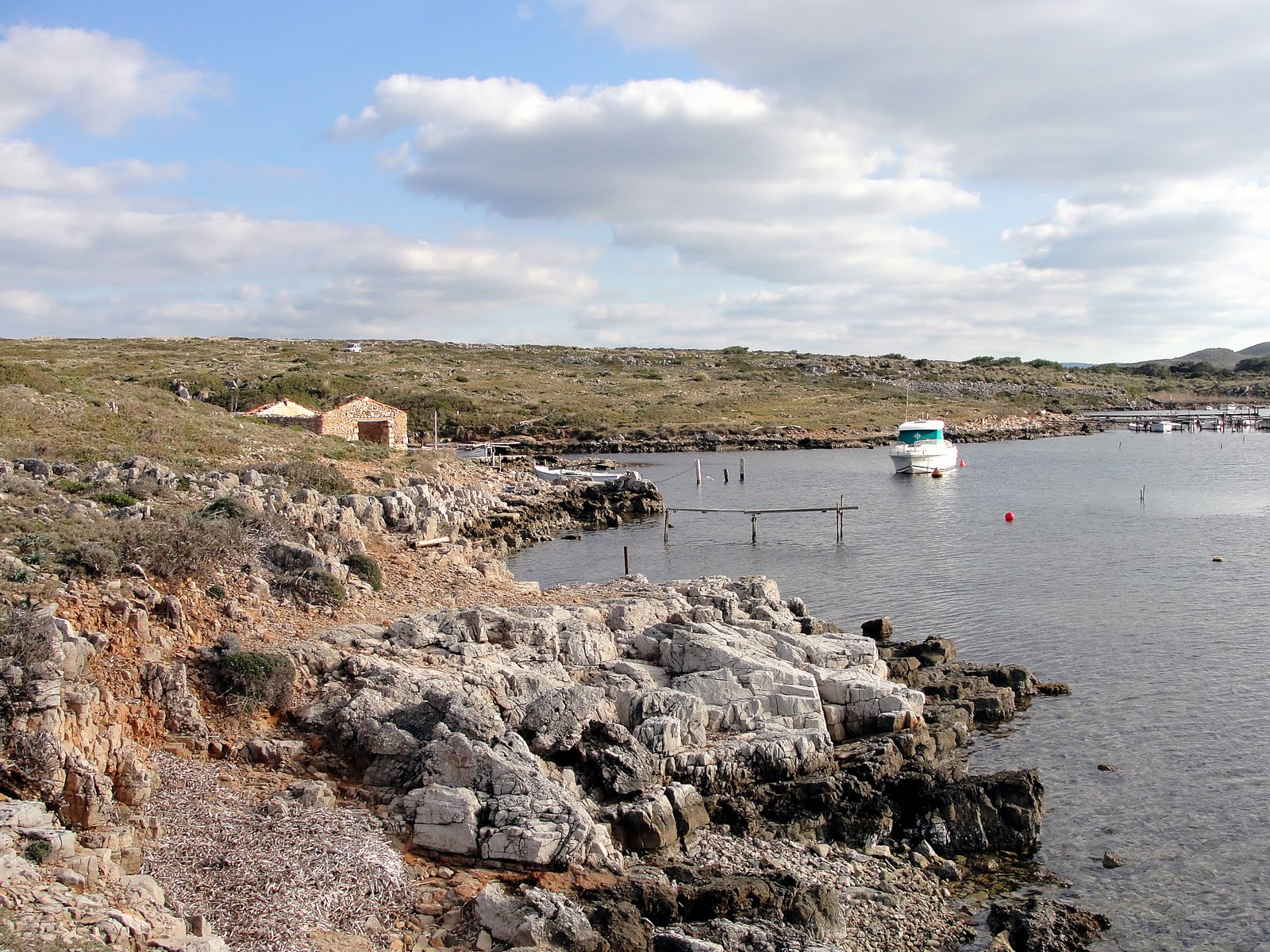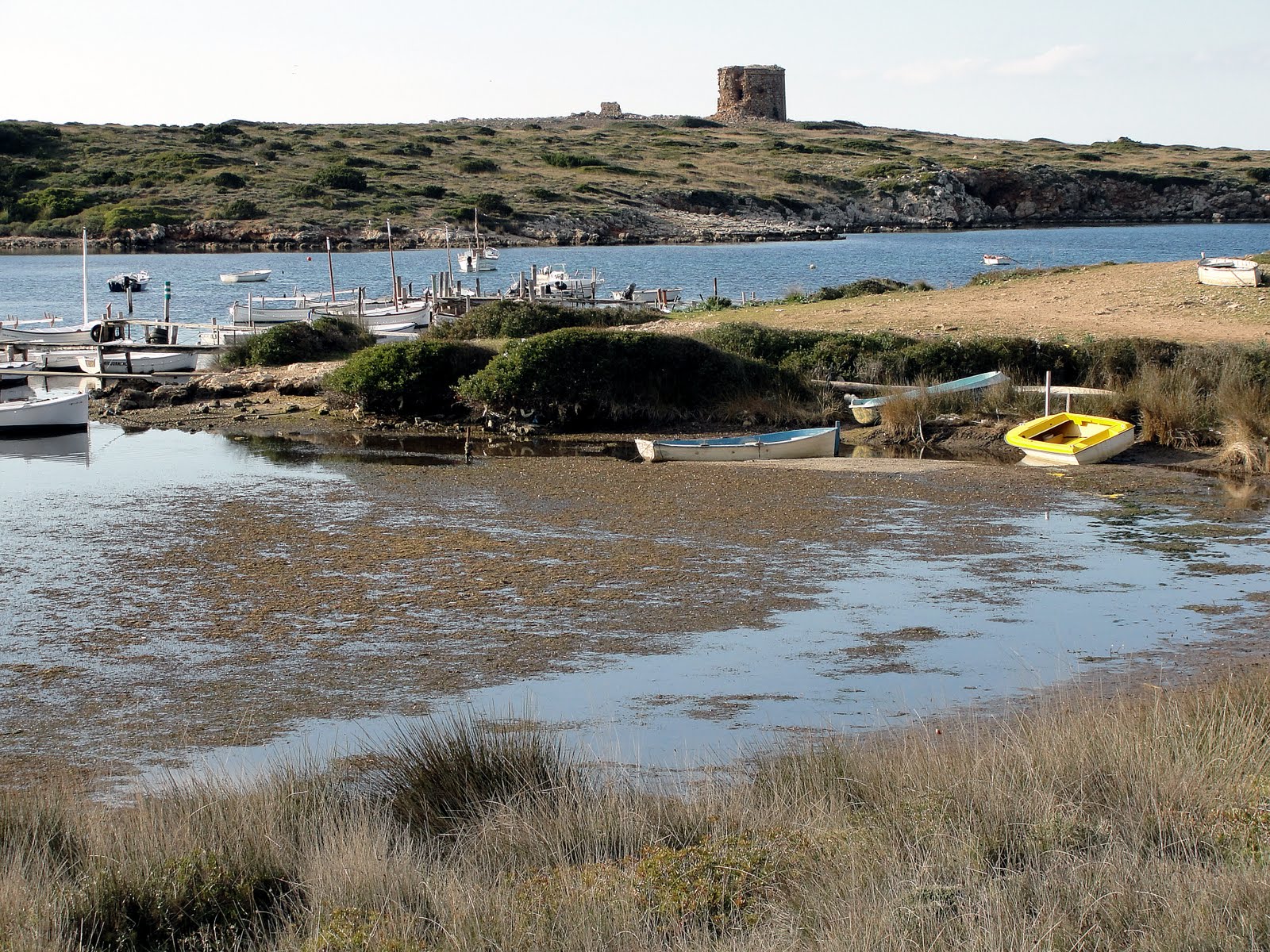 the anchor sites of Sanitja interpreting "anchor" to mean the large area between the Isla de Porros, the west side of Cap de Cavallería, the entrance to the port of Sanitja and the small island to the west of it. Inside the port, silt and the huge meadows of seaweed have covered over the archaeological remains that undoubtedly lie below.