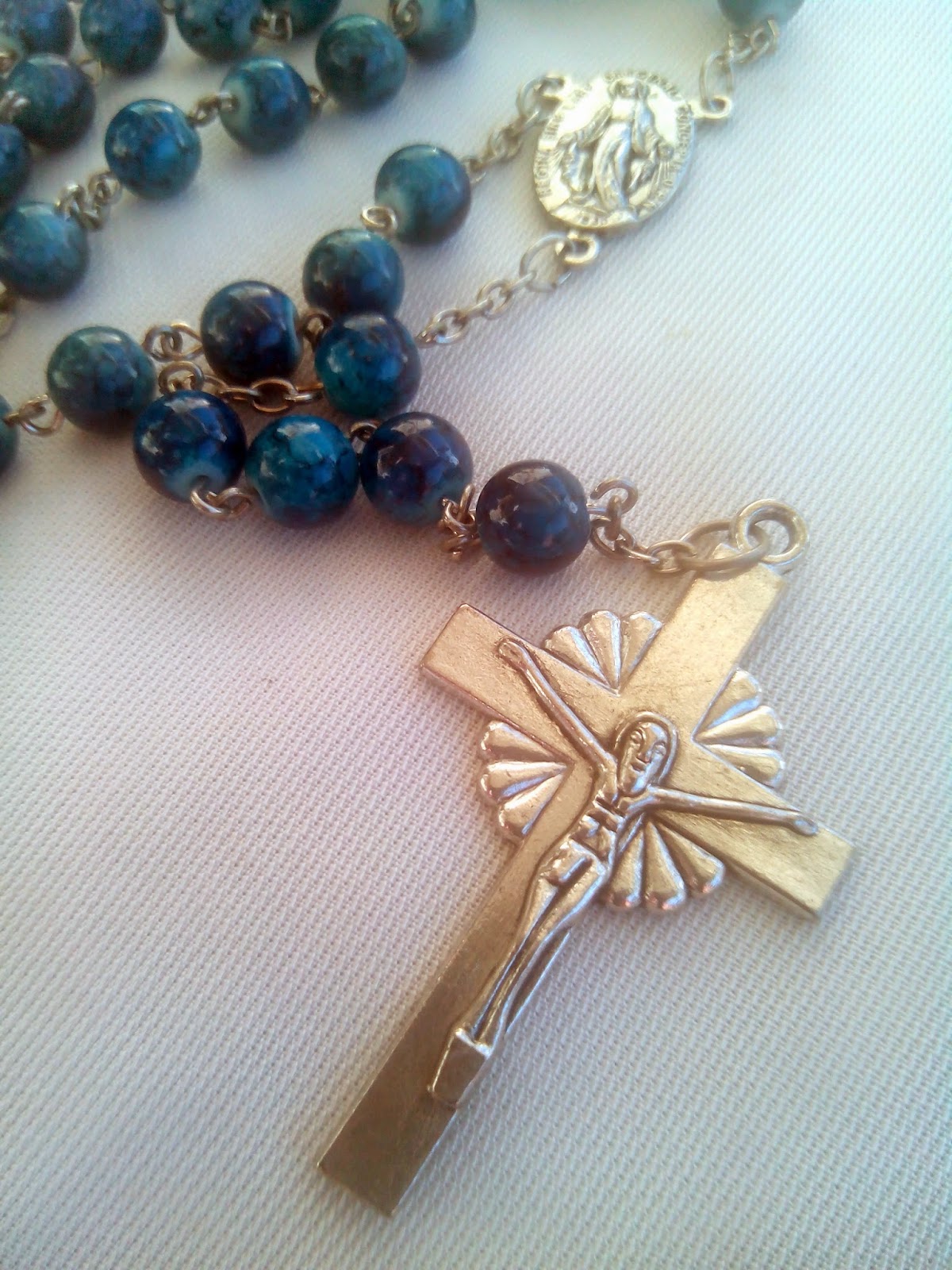 Rosario de Medalla Milagrosa Azul con Cadena QuadLink y Etsy